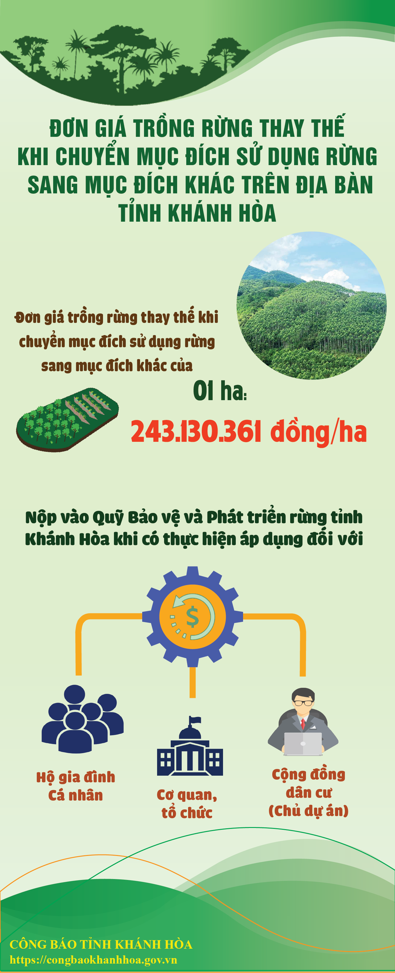 Đơn giá trồng rừng thay thế khi chuyển mục đích sử dụng rừng sang mục đích khác trên địa bàn tỉnh Khánh Hòa