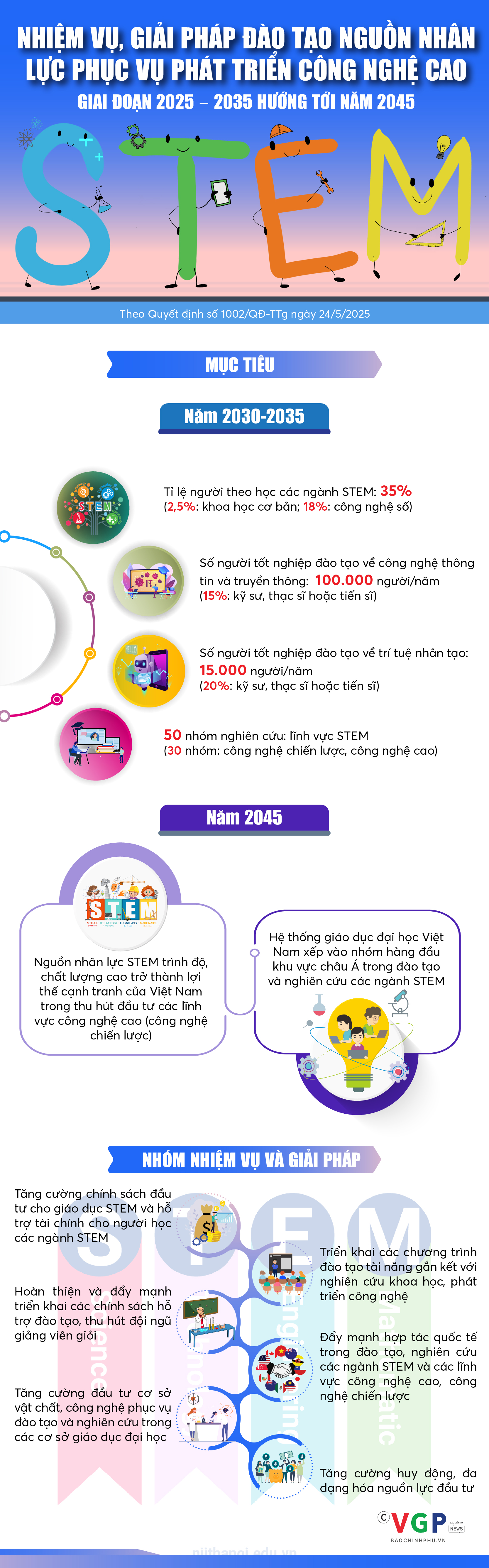 (Chinhphu.vn) - Chính phủ ban hành Quyết định số 1002/QĐ-TTg ngày 24/5/2025 phê duyệt Đề án đào tạo nguồn nhân lực phục vụ phát triển công nghệ cao giai đoạn 2025 - 2035 và định hướng tới năm 2045.